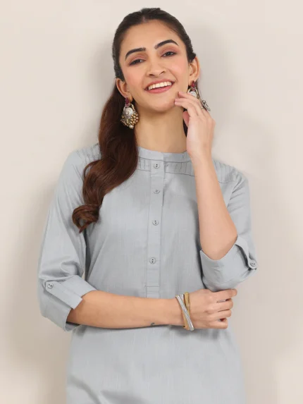 Blue Solid Cotton Blend Straight Kurta